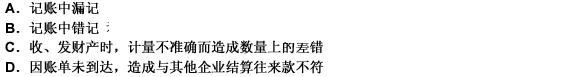 下列各项中 会导致账实不符的有()。 A.记账中漏记B.记账中错记C.收 发财产时 计量不