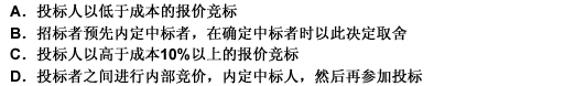 下列不属于投标人实施的不正当行为的是( )。A投标人以低于成本的报价竞标 B招标人预先内定中标人C