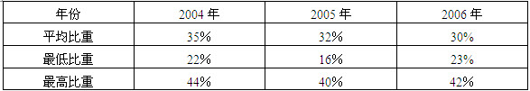 下面是某省近三年高考语文试卷中文言文阅读所占比重统计表: 年份 2004年 2005年 2006年 平均
