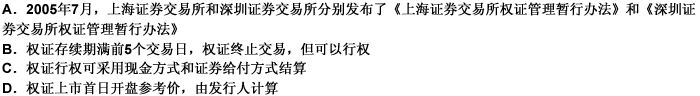 根据我国现行规定,下列关于权证的说法错误的有()。 A.2005年7月,上海证券交易所和